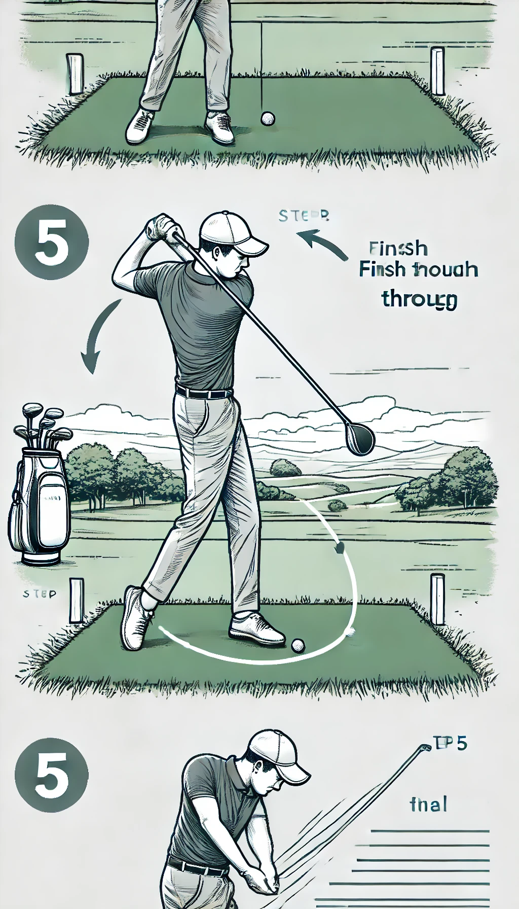 - 정확한 타격: 클럽 헤드의 중앙에 맞추도록 집중합니다.