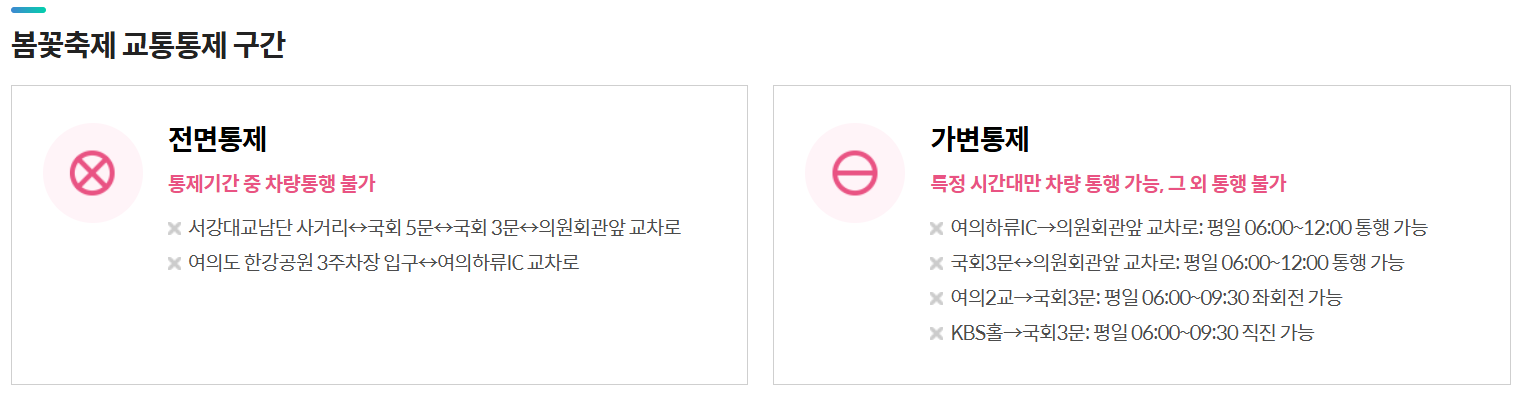 - 장소: 서울 영등포구 여의서로(국회 뒤편 윤중로 일대)