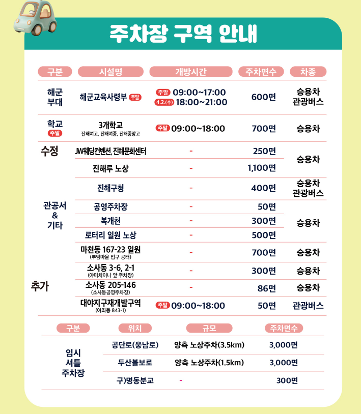 - 주차는 창원시 제공 ‘축제 주차장 위치도’ 사전 확인!